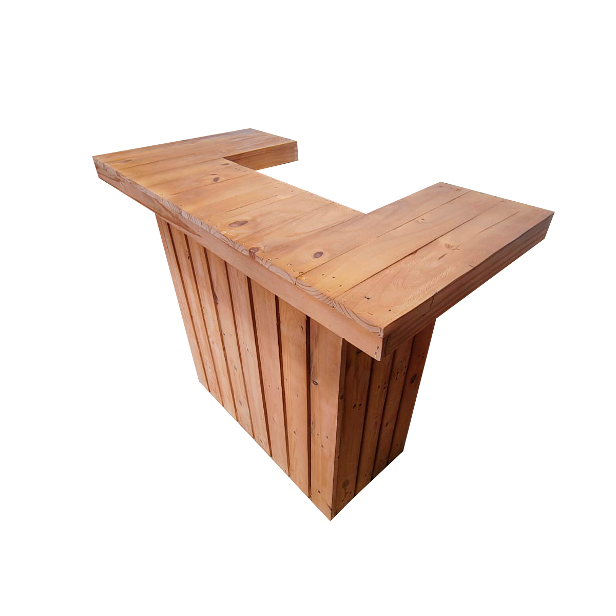 Fabricado em madeira resistente e tratada, o balcão suporta uso intenso e repetitivo. A reutilização de pallet torna o produto mais ecológico, contribuindo para projetos sustentáveis e conscientes.